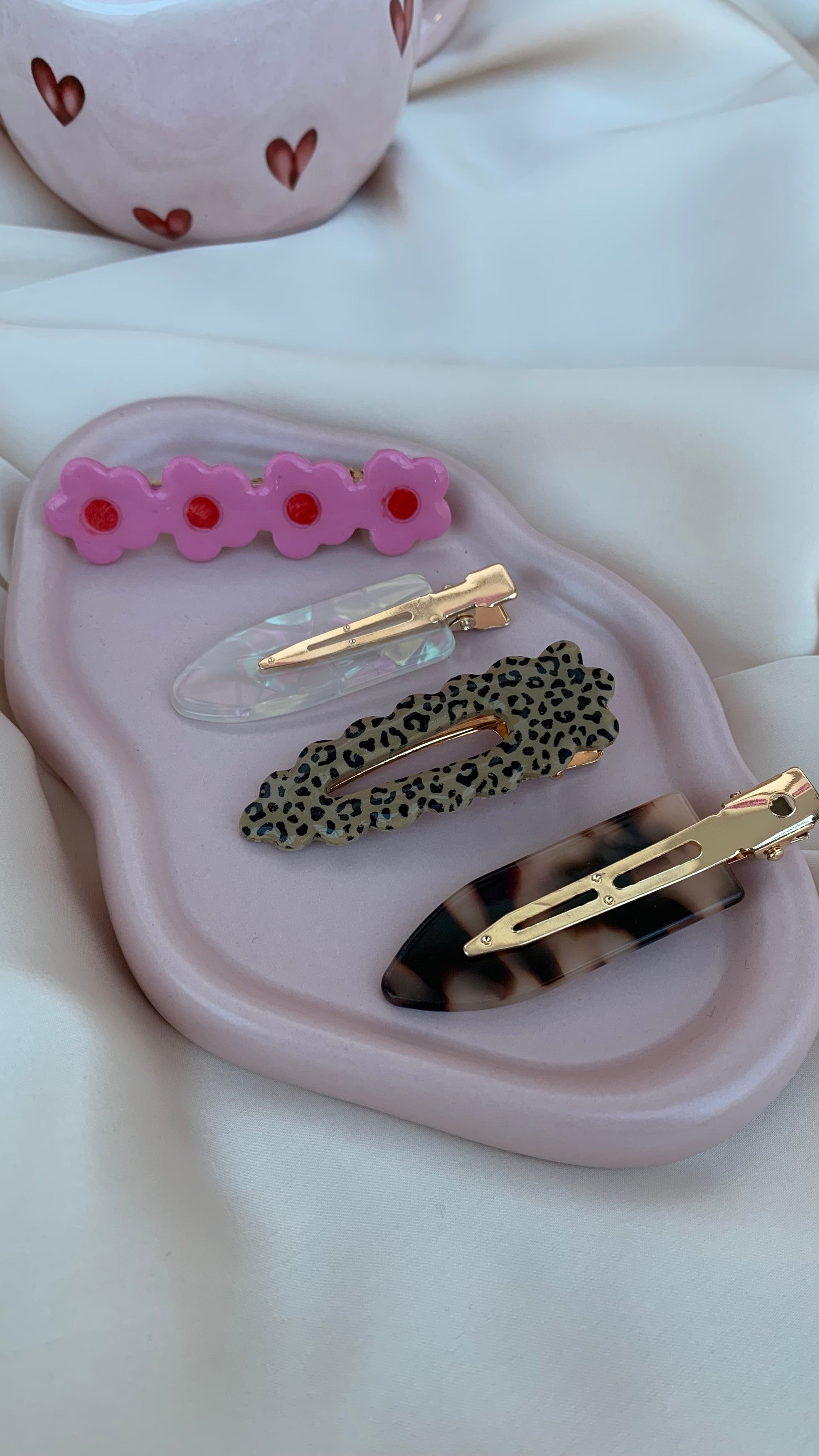 Barrette Fleurs rouges et roses